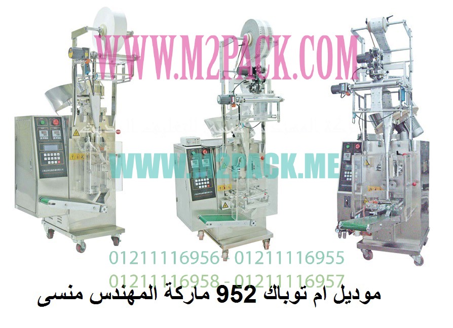 المعايير الفنية والتقنيات الهندسية لماكينة تعبئة وتغليف البودر شديد النعومه مثل النشا و الدقيق و البن الآتوماتيكية ذات اللحام من الظهر موديل ام تو باك 952 ماركة المهندس منسي :